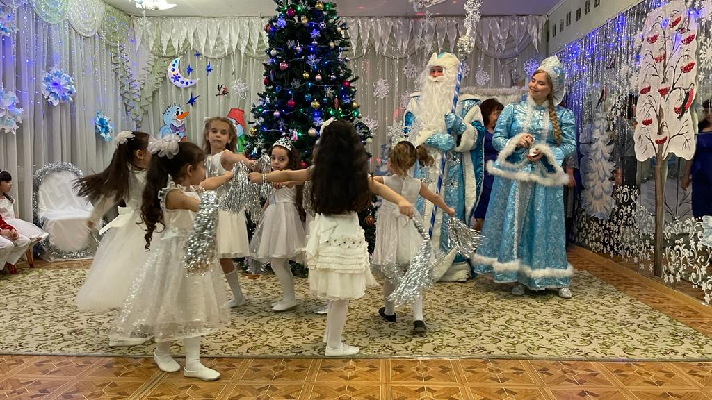 20 декабря во второй младшей группе №1 «Аленушка» прошёл новогодний утренник. Ребята пришли нарядные, превратившись в весёлых зайчиков, волчат и медвежат, а девочки — в красивых снежинок. Все закружились в новогоднем хороводе. Малыши веселились у нарядной ёлочки с добрым Дедушкой Морозом, красавицей Снегурочкой, шустрым Зайчонком, Лисой и Снеговиком. Они водили с ними хороводы, играли в снежки, танцевали. Помогли Деду Морозу зажечь огоньки на праздничной елочке, а он одарил их подарками. Утренник прошёл в теплой сказочной атмосфере.