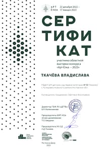 Воспитанники группы № 7 «Забавушка» Ткачёв Владислав и Андрухова Полина приняли участие в номинации «Арт-ёлочка» для детей. Под руководством педагога Бондаренко С. В. ребята выполнили ёлочки из нетрадиционных материалов, их работы были предоставлены на конкурс в отдел искусств. За участие в областной выставке дети были отмечены похвальными листами.