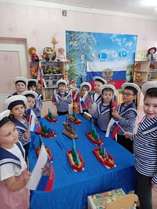 22 февраля 2023 г в подготовительной группе №1 «Аленушка» (воспитатель Отраднова М.В) прошло интегрированное занятие «Флот России». Ребята получили представление о морском флоте, познакомились с историей возникновения русского флота, с профессиями на корабле, учились строить корабли, а затем с радостью обыграли постройку.