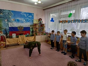 22 февраля в подготовительной группе #7 «Забавушка» прошел спортивный праздник, посвященный Дню защитника Отечества. Мальчики и девочки пели песни, танцевали и с выражением читали стихотворения. Праздник проходил в форме игры и состоял из различных эстафет, в которых участвовали папы . Ребята проявили большую активность, подарили друг другу хорошее настроение, радость общения и улыбки, показали какие они ловкие, выносливые и смелые.