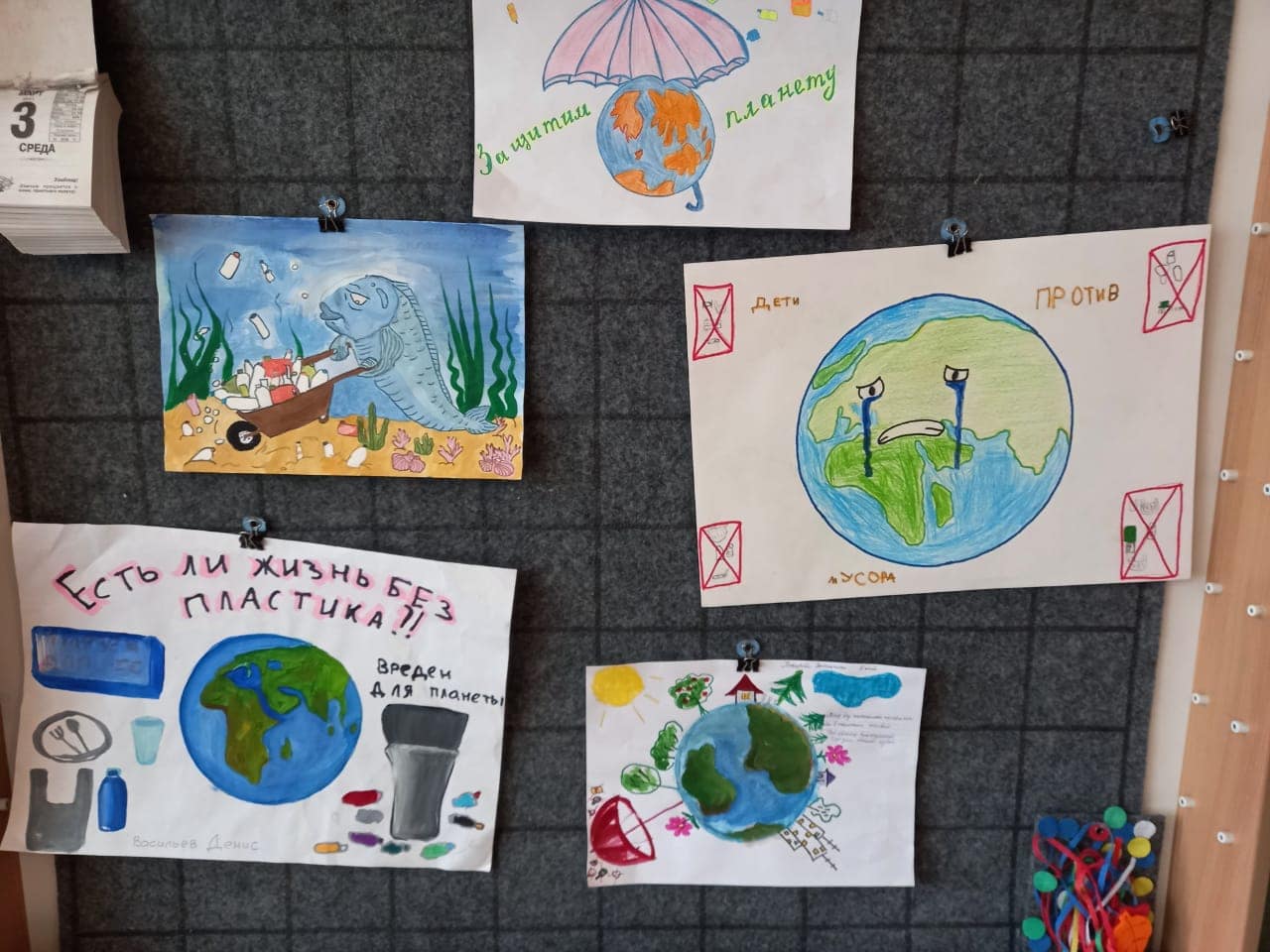 В феврале дети средней группы № 7 приняли участие в районном творческом конкурсе « Защитим Мир от пластика». Все рисунки были интересными и поучительными . К каждому рисунку дети вместе с родителями придумали лозунги, призывающими беречь природу.